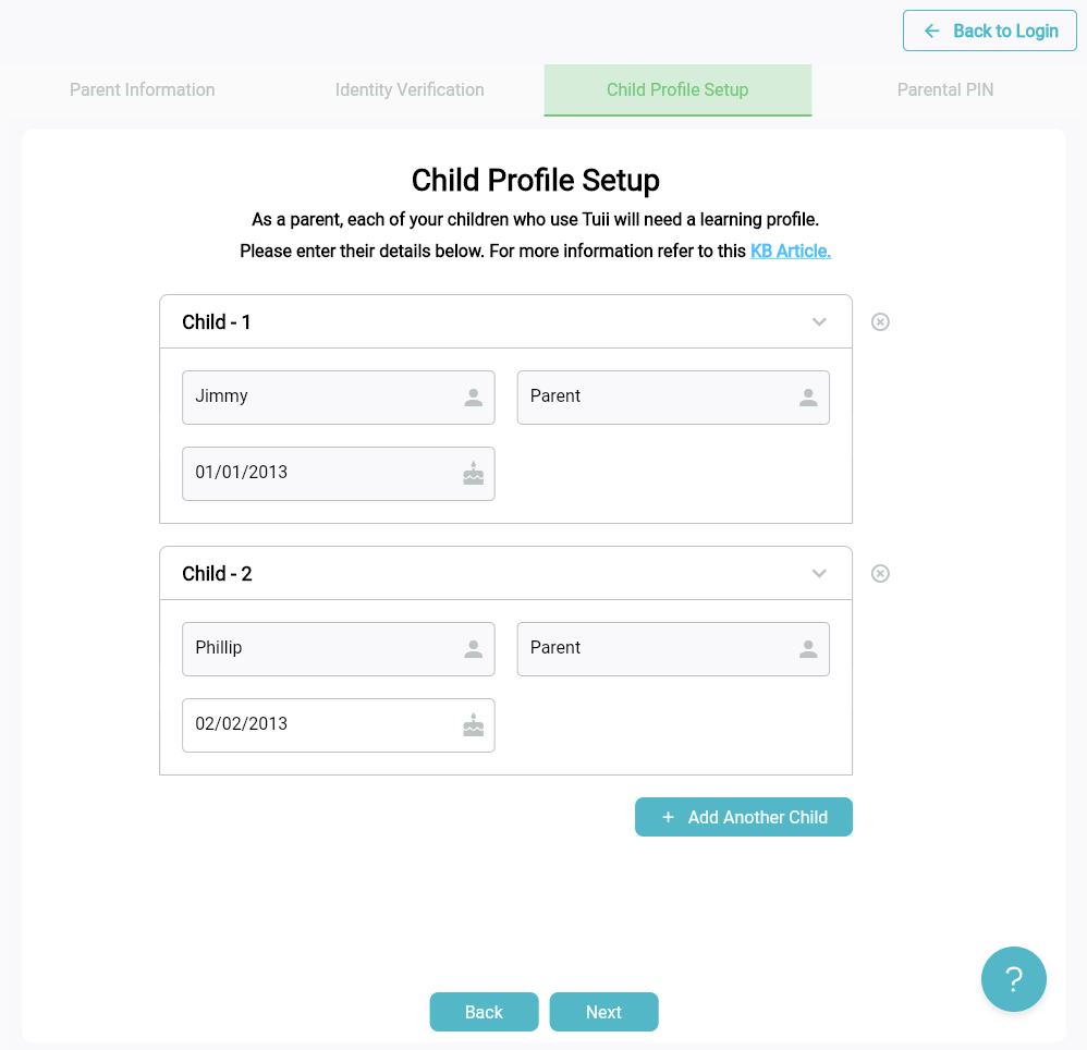 Step 9: Add your children. To add more press “+ Add Another Child”.